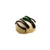 A shortbread cookie with a jellybean in the center and drizzled with chocolate. The spot of colour in these cookies makes for an attractive cookie with great shortbread flavour.